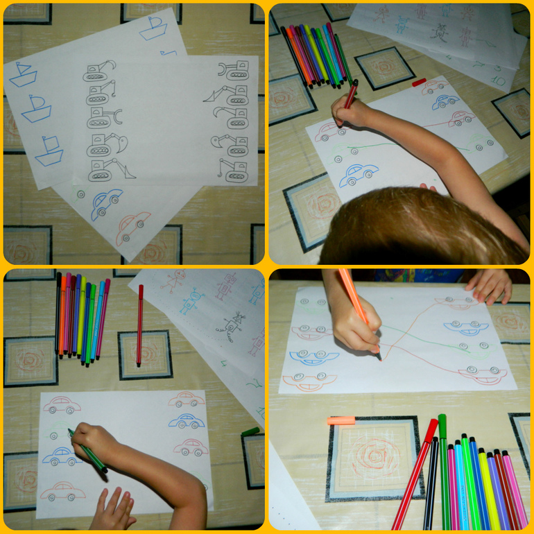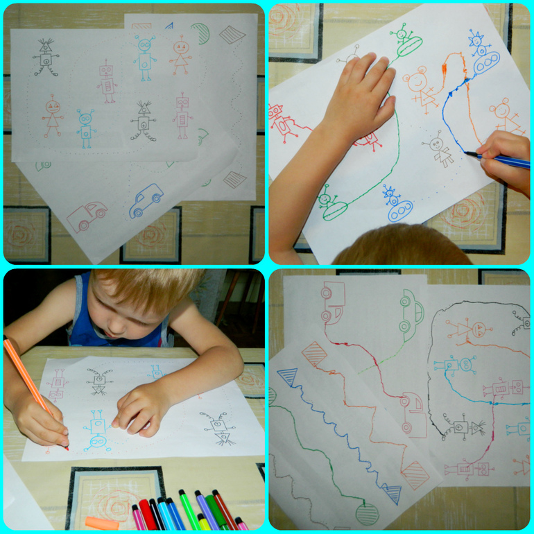 Я много придумываю игр на подбор, не меньше печатаю проводилок и соединялок. В последнее время все чаще рисую их сама. Заметила, что Санька больше предпочитает мои художества, нежели печатный материал или пособия. Наверное он чувствует, что в моих каракулях частичка души ))) Сыночек щелкает их как семечки и постоянно просит добавки. В день, примерно листов 10-12 он выполняет. А я и рада стараться.