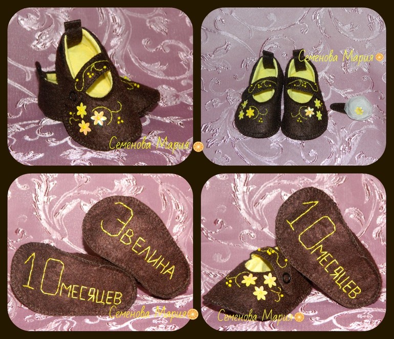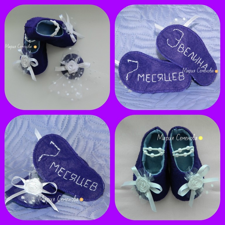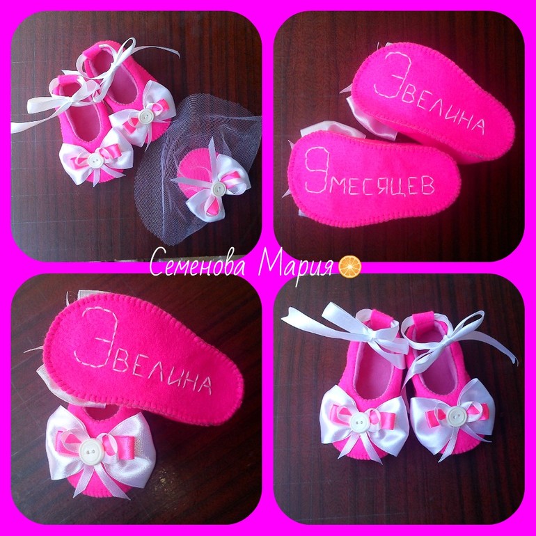 Фетровые именные туфельки для дочурки 6, 7, 8, 9, 10 месяцев.