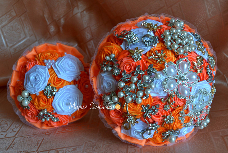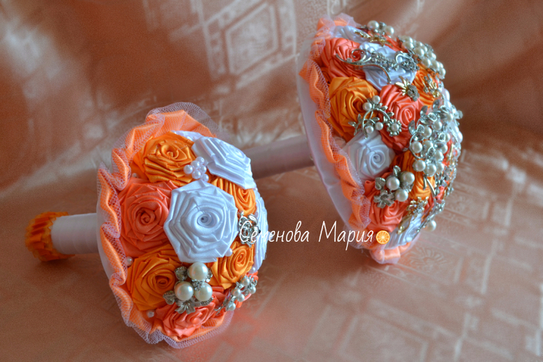 Букеты - МК как все закрепить и собрать, да чтобы на совесть было, так и не нашла. Надумала, напридумывала сама. Когда рассказала сестре из чего собрала, она не поверила совершенно. Они очень крепкие, для самообороны даже подойдут. Если честно, то переживала когда смотрела на летящий в подружек букетик, слава Богу никто не пострадал