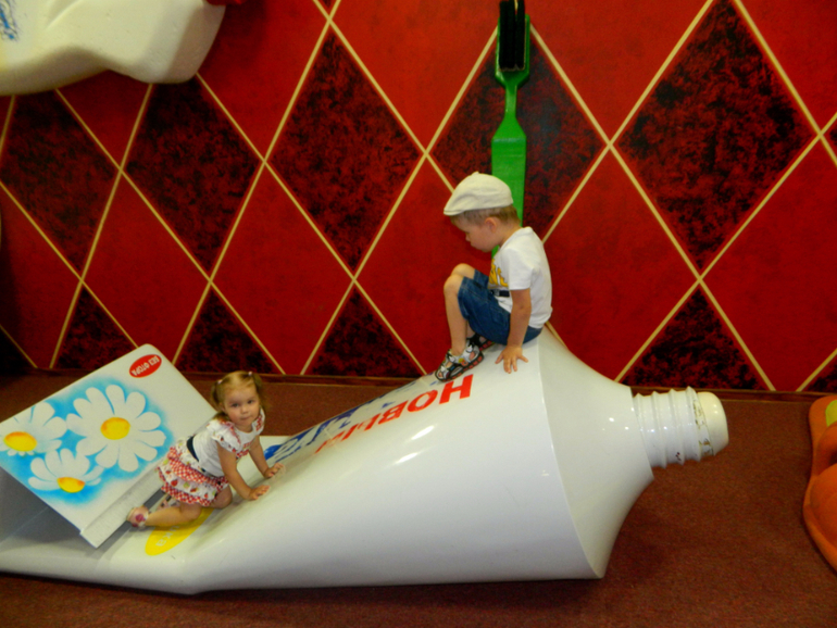 Моих детей больше всего привлекла зубная паста, они катались с нее как с горки. Утка стала так называемой горой, куда они пытались вскарабкаться. Да и вообще ванная комната их манила вновь и вновь. Губную помада Санька называл ракетой, да и действительно похожа.