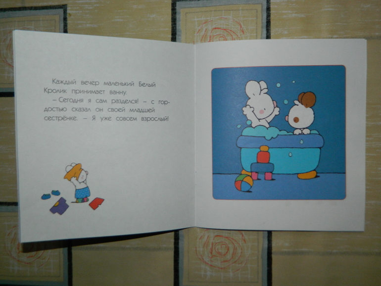 Здесь я не поняла почему кролик сначала принимает ванну, а потом ужинает. Хотя может для кого-то это норма, для нас нет. У нас другая последовательность.