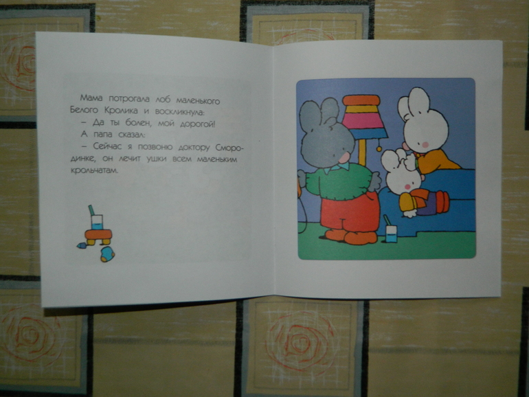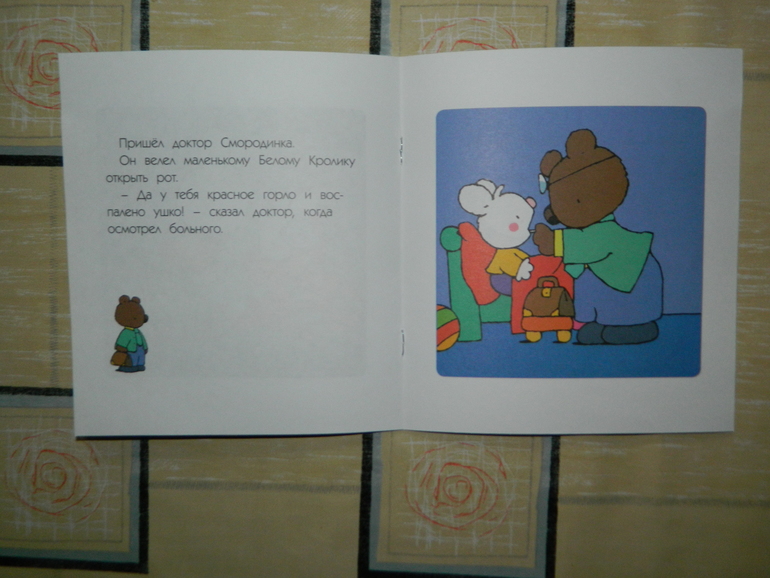 Книжка называется "Маленький Белый Кролик идет к врачу", а по факту врача вызывают на дом.