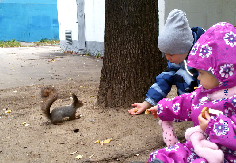 Сегодня (ну вернее уже вчера), после занятий Саньки на физ-ре мы понаблюдали за белочкой. Так здорово, столько эмоций у деток от нее. Она прелесть.