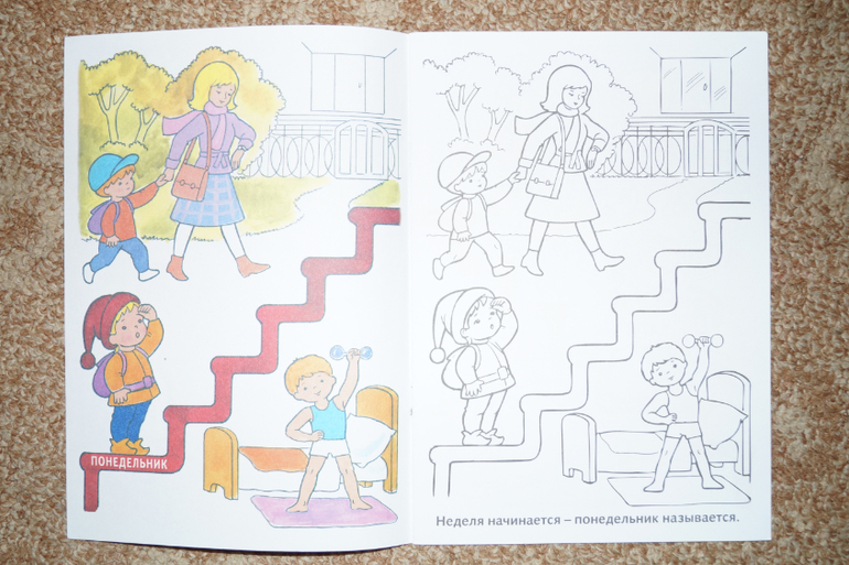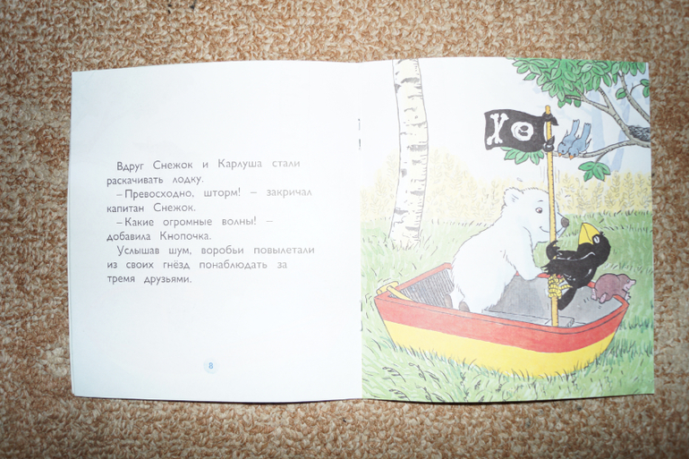 большие буквы, милые картинки. Если вот Санька слушает и запоминает именно текс, то для Эвелинки важно все, что нарисовано. Она запоминает визуально. Даже не понимая ни одной буквы, она с точностью находит книгу по описанию изображений в ней.