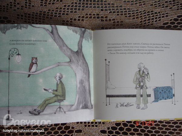 "Дядя Амос не идет на работу" мне очень понравилась, она такая теплая, душевная, уютная. Очень гармоничный текст и иллюстрации.