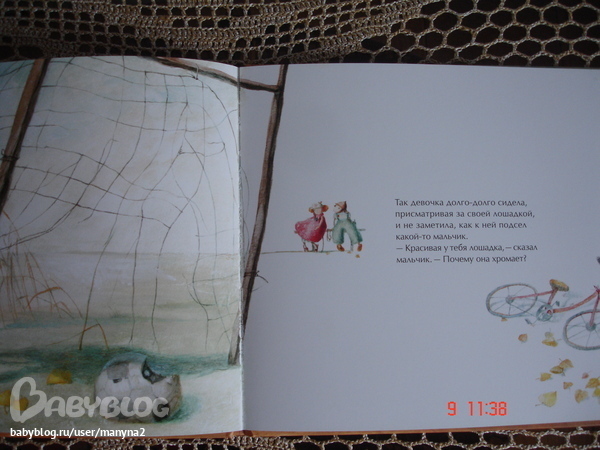 А вот эта книга для меня недоумение. Когда заказывала, отзывов и текста было очень мало. Я прекрасно понимала, что история не имеет конца, что у каждого он будет свой. Но того что есть в книге, мне не хватает даже для начала. Но я точно оставлю ее для дочери, т.к. она совершенно неоднозначна и у ребенка может вызвать иные эмоции. Я сфотографировала весь текст.
