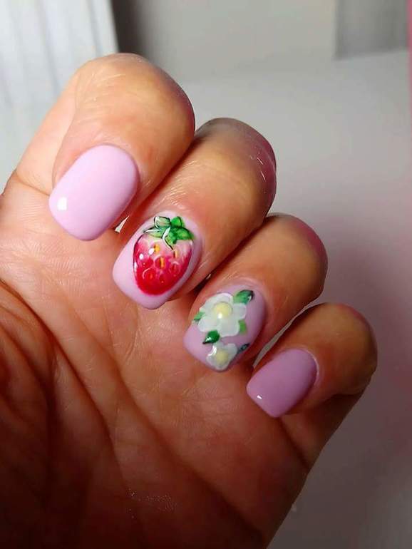 Я конечно не художник и мне очень далеко до русских мастериц, но все же думаю первая попытка нарисовать себе клубничку на ногтях удалась! Стащила с инстаграма))) Цветочки конечно не очень получились😂