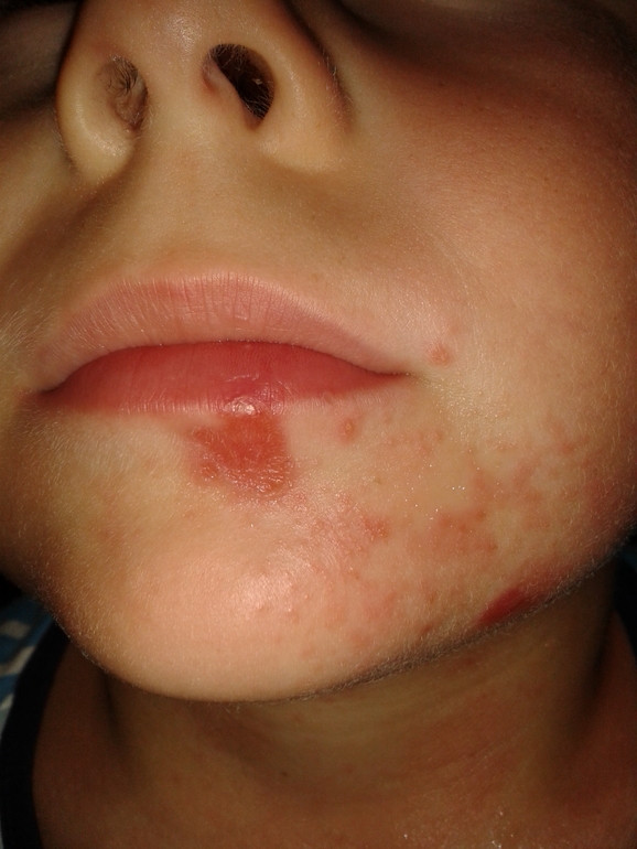СыночкиПривезли ребеныша с дачи, где он с бабушкой был. Так вот за 4 дня у сынули образовалась вот такая ерунда. Думаю что стрептодермия, может есть еще варианты. Завтра утром конечно к врачу, но хотелось бы сейчас уже облегчить состояние малыша, тем более что и глотать ему больно, есть отказывается.