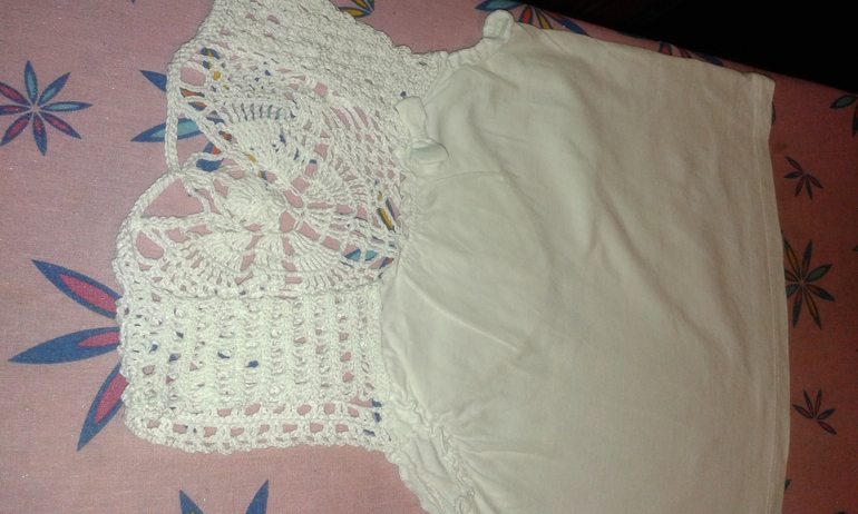 Была белая майка, которую не успели "сносить", рост 86 см. и моток ниток.