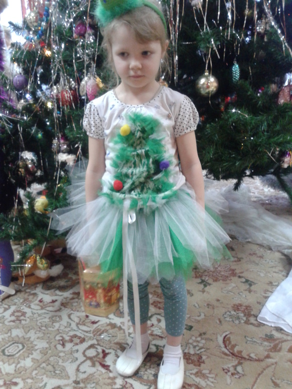 Костюм делала сама, юбка ту-ту из фатина, а верх из старой футболки.