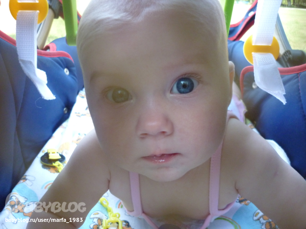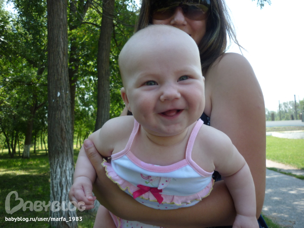 К нам(точнее в родительский дом) приехал брат с супругой и сынулей.Племяшу уже 5 месяцев...знакомство с сестренкой состоялось!Он все пытался её обнять,погладить...а получалось,что чуть глазки не повыкалывали!...Он с ней пытался поговорить...пищал,смеялся,а доча все смотрела на него удивленными глазами.А сидя за столом(у меня на руках и лицом к народу) начала смеятся в голос со своего дяди....такого мы еще не слышали от нее