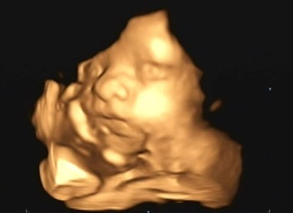 Видимо поэтому младенец от пинков и прыжков внутриутробных перешел к перекатываниям и выпячиваниям. Стало несколько легче, да и смотрится забавно. На фото он выпятил неизвестную часть тела, судя по размеру бугра - попу, чем привел своего папу в восторг.