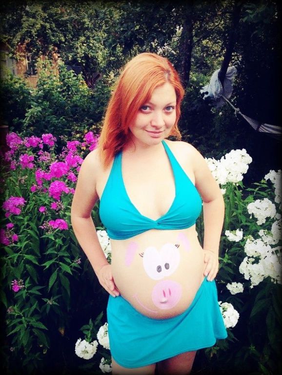 Сестра нарисовала мне на животе поросеночка. Потому как внутри меня Андрюшка-хрюшка.