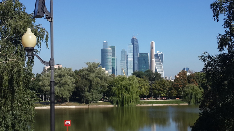 Красивый вид с его работы на Москва сити, напротив Новодевичий монастырь, Воробъевы горы))))