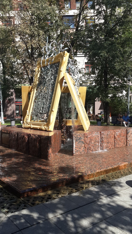 Рядом кстати стоит симпатичный фонтан, вода которого разливается по рамам...