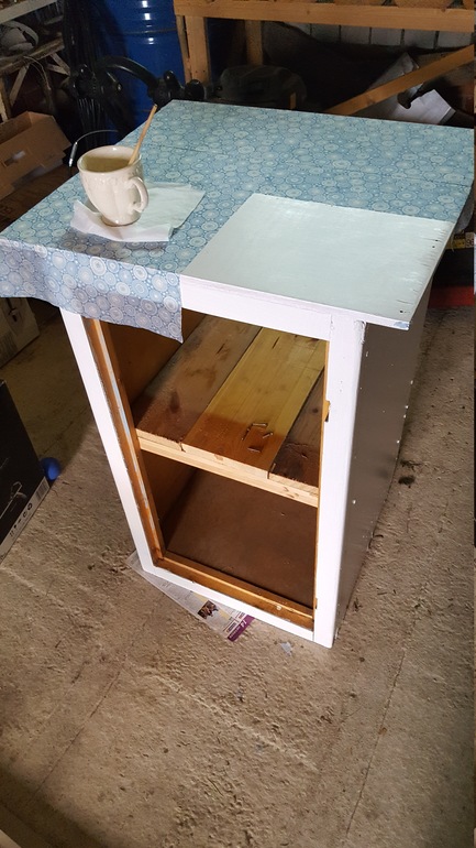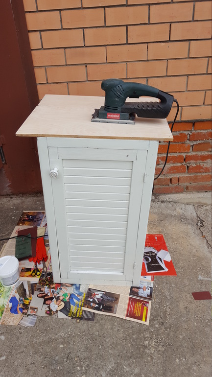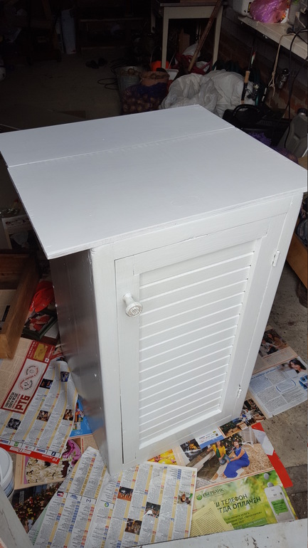 Жила-была на даче в ванной вот такая тумбочка, точнее раньше это была мойка, позже раковину сняли, прибили сверху дощечки и стала она называться тумбочкой)