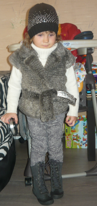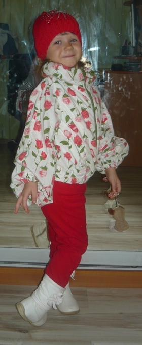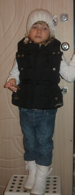 да я сама тоже не знаю,во что одевать каждый день - так как на площадке грязища нереальная,снег ещё лежит, тут же лужи...Мы просто именно сегодня по площадке не гуляли,ходили на почту за шапками :) а так обычно- это темные джинсы, сапоги резиновые, толстые краги непромокаемые, ну и т.д. :))))