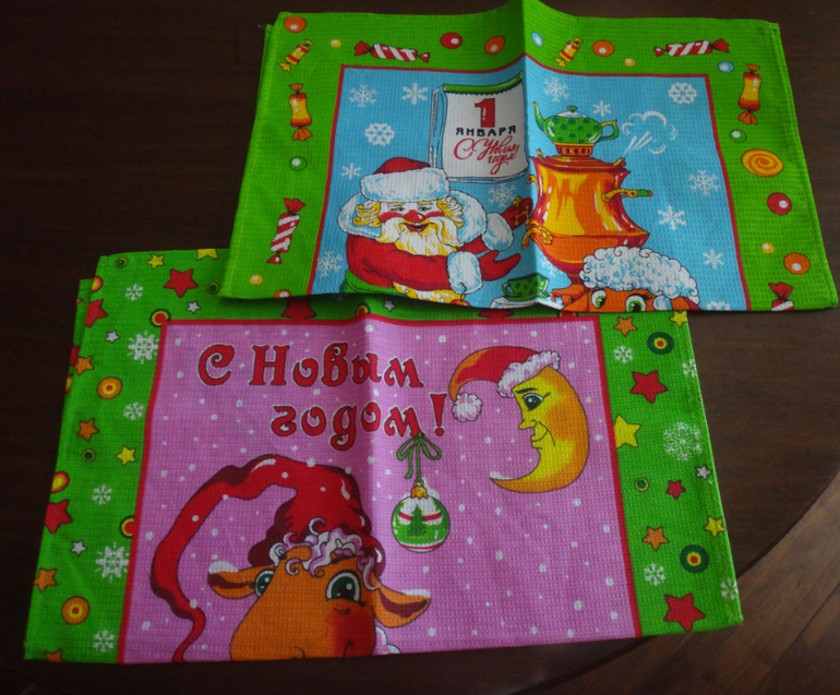 Полотенчики кухонные, вафельные с рисунком. 46*59 см . Цена 100 р каждое