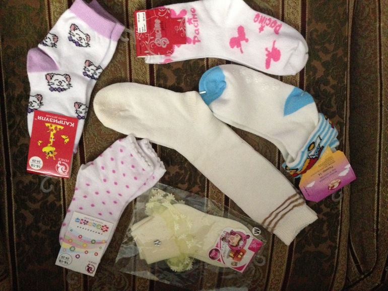 Нижний ряд - носки белые в идеале р-р стопы 14-16 см. Колготки в идеале 3 пары на 92-104 см по 35 р/ пара