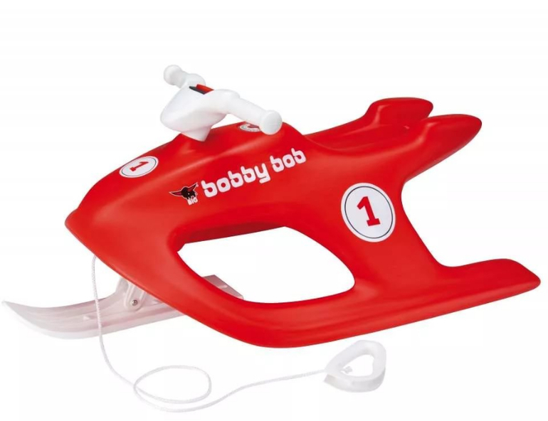 Снегокат оснащен удобными ручками и громким клаксоном. Есть