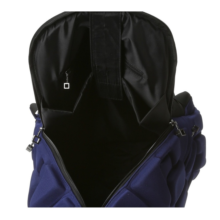 Два внешних отделения на молнии, внутри: отделение для ноутбука (или тетрадок) на липучке, отсек для мелких вещей на молнии. В общем, неплохо организованное пространство для школьника.