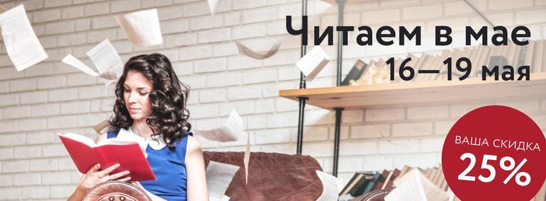 Итоговая скидка 25% распространяется на все книги стоимостью от 10 руб. со скидочной меткой. При этом другие скидки - накопительные и акционныe - не применяются к позициям, участвующим в акции. Сроки действия скидки: 16−19 мая, 00