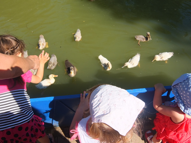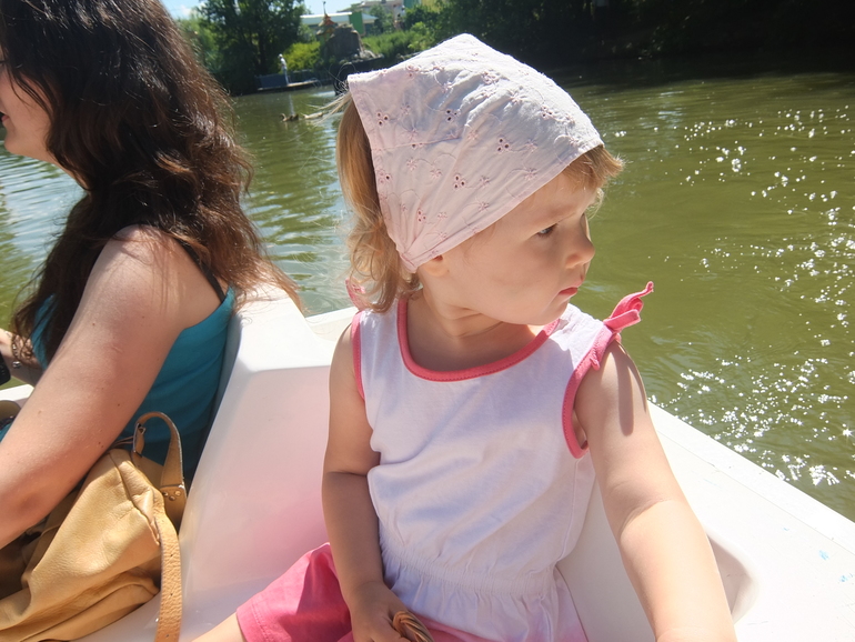 Вокруг зоопарка большой пруд, зоопарк на островке находится. По пруду мы прокатились на катамаране.