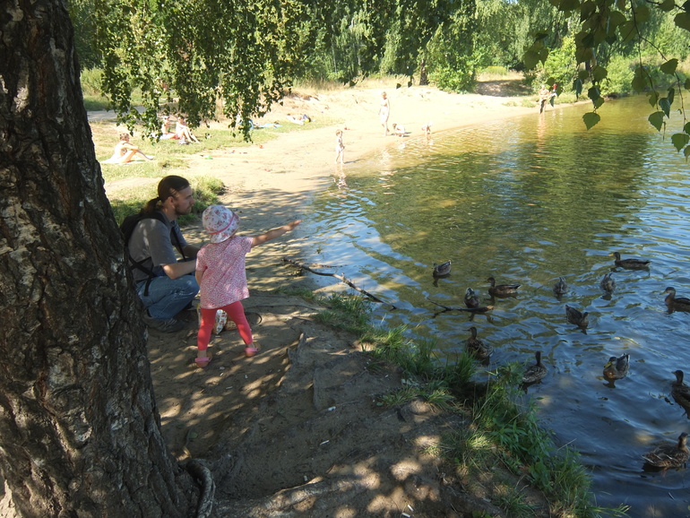 Ходили на Москва-реку. Кормили уточек, смотрели на кувшинки)