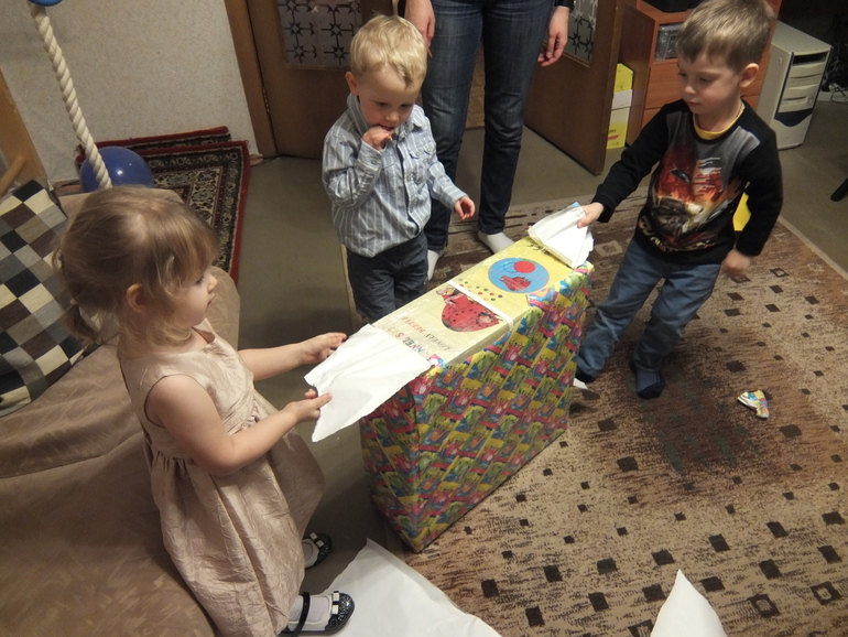 Всего было 4 ребенка (от 2 до 3,5 лет) с родителями. Оптимальный вариант для квартиры. Больше не надо))).