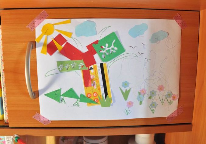 Повесили на видное место наше художество. Папа придет с работы, будем хвалиться)))