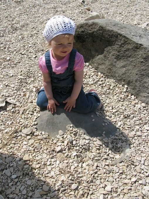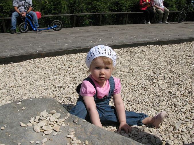 И на ветреной площадке. Песок пока не завезли, поэтому много камней. Люба их перебирала...