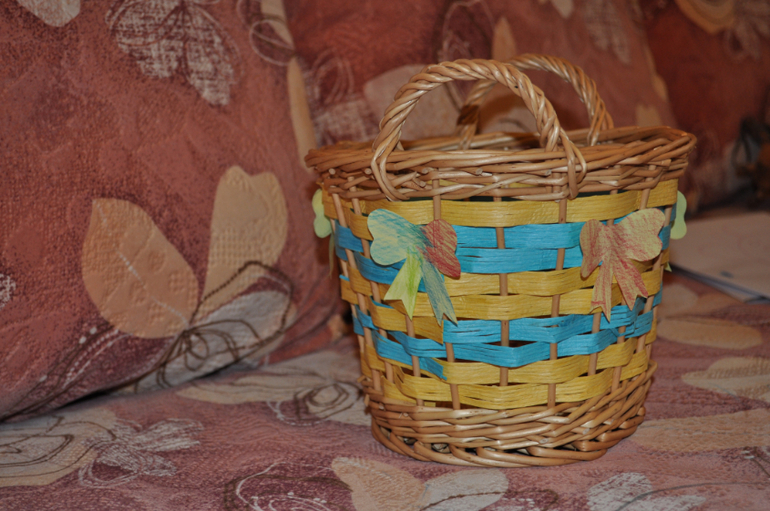 Продолжаю время от времени читать про вальдорфскую педагогику, про то, как проживать времена года, какие занятия каждому периоду свойственны. Что-то уже получается применять в жизнь. Очень мне хочется ввести ритмы дня и недели, но так это для меня самой сложно, хотя и чувствую, что Соне очень-очень нужны ритмы. С ритмами года все-таки несколько проще, хотя некоторые занятия, которые, конечно, были свойственны людям когда-то давно, сейчас представляют определенную трудность в рамках города. Например, октябрь считается месяцем плетения корзин. Я прочитала, и почти перестала об этом думать, так как для меня это фантастика - какие корзины, как плести, из чего? Но когда я оформляла заказ в Рид.ру, наткнулась на готовый набор для плетения, и плетение подразумевалось очень посильное для Сони и меня - оплести лентами уже готовый каркас корзины, и цена небольшая. Правда, пока мы его получили, октябрь успел закончиться, но это да, это в Рид.ру бывает со сроками доставки, к сожалению. И вот сегодня мы с Соней сделали нашу корзинку: