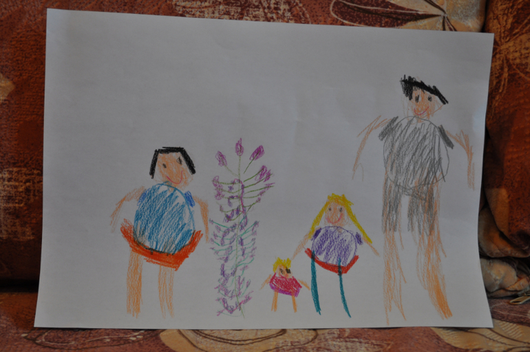 И вот не успели мы прийти, как нам дали задание - нарисовать совместный рисунок на тему "Мой дом, моя семья" для какого-то там конкурса. Завтра последний день сдачи работ. Сдали очень мало, срочно надо еще. Очень по-нашему. Совместный рисунок для меня звучит совершенно бредово, так что я уточнила у воспитательницы, что под этим подразумевается. "Ну, Вы нарисуйте, а Соня пусть раскрасит". Ну надо, так надо...