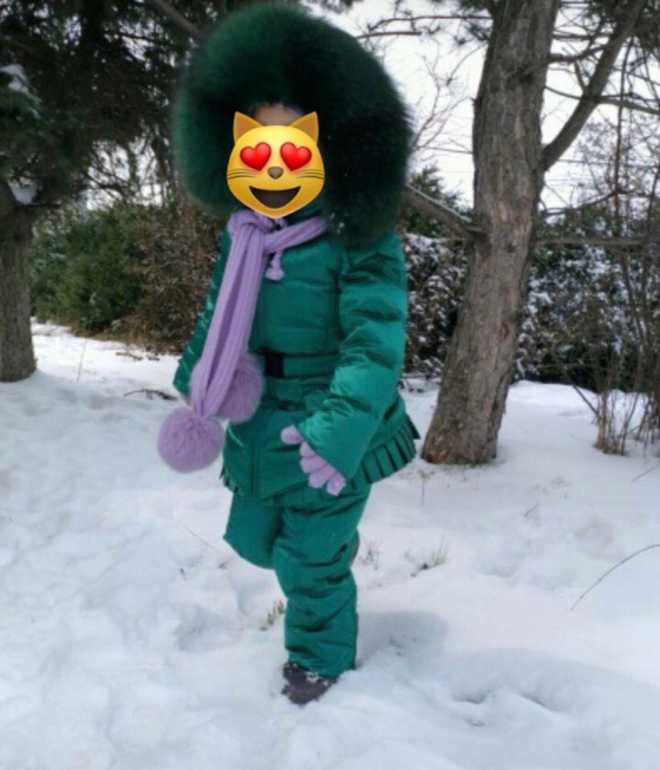 Наполнитель пух. Мех оригинальный, монклеровский. Этот комбинезон самый тёплый из всех, которые у нас были. Параллельно носили 4 комбеза: (Рейма Reima, Геп gap, carters). По этому состояние очень хорошее. ...