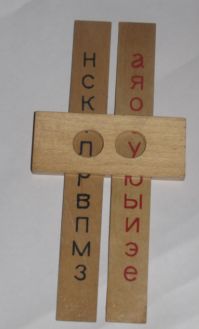 У нас эта игра деревянная (наверное, покупная). На одну ленеечку помещается только половина согласных, поэтому вторую половину букв я написала сама тоненьким маркером (толстый растекается) на обычной деревянной линеечке длиной 20см.