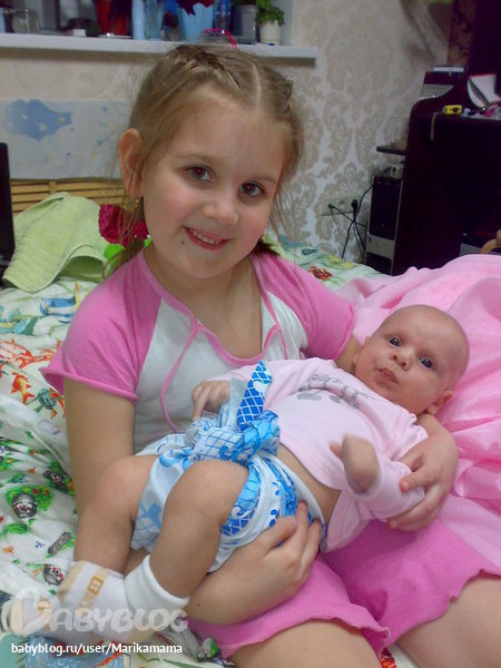 Соседи у нас или поссорились, или что, я особо в их дела не влазила, но суть в том, что меня попросили пару раз посидеть с двумя семимесячными близняшками, а так как они родились сильно недоношенными (на 30 неделе их экстренно прокесарили), то размерами эти семимесячный девченки с моего Димку:))) Разница в том, что они уже ползают и играют во всю)