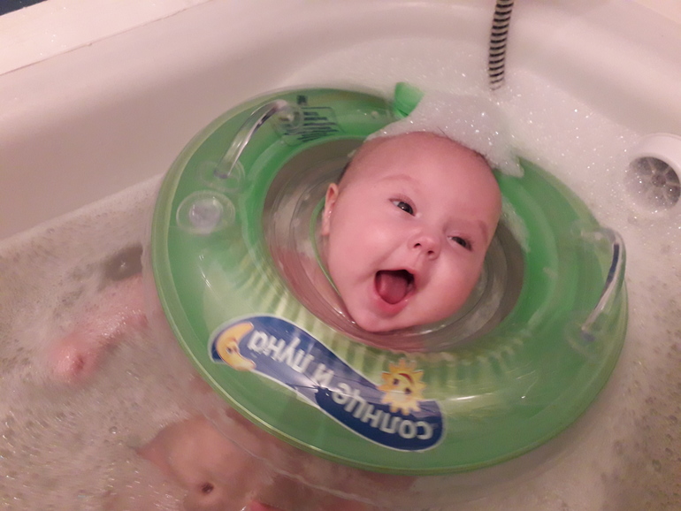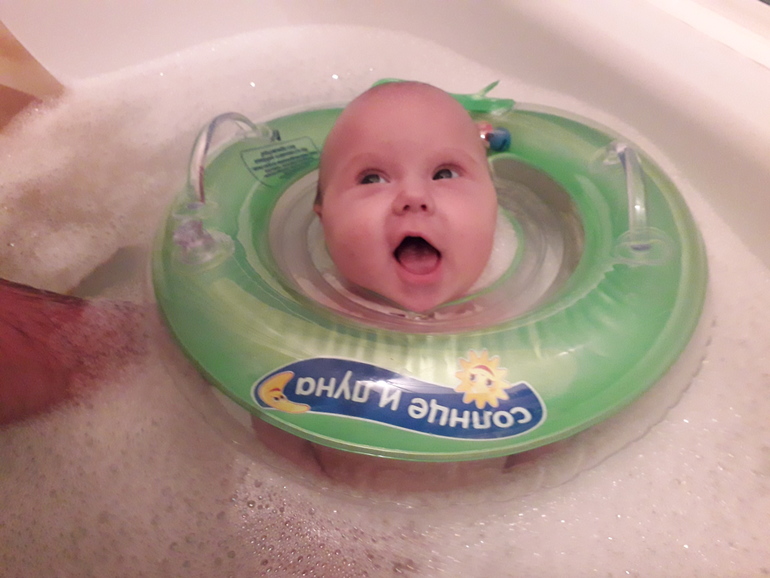 Девочки пока переворачиваться на живот сами не хотят, зато охотно улыбаются и агукают. Очень любят купаться и гулять.