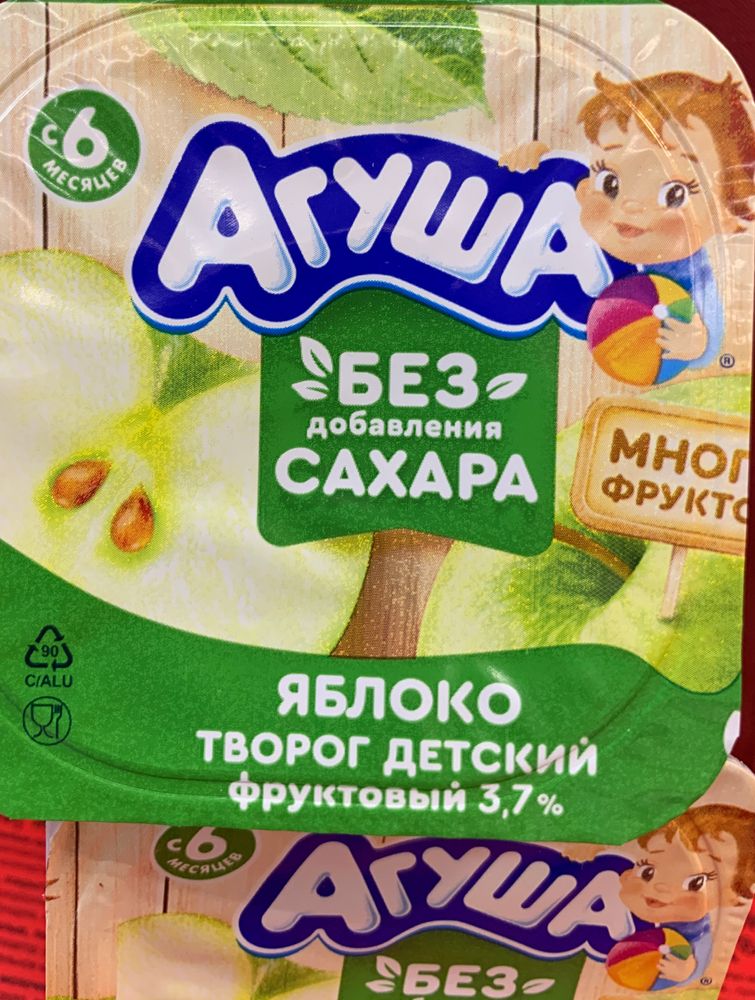 Творожок «Агуша» без добавления сахара со вкусом - «яблоко».