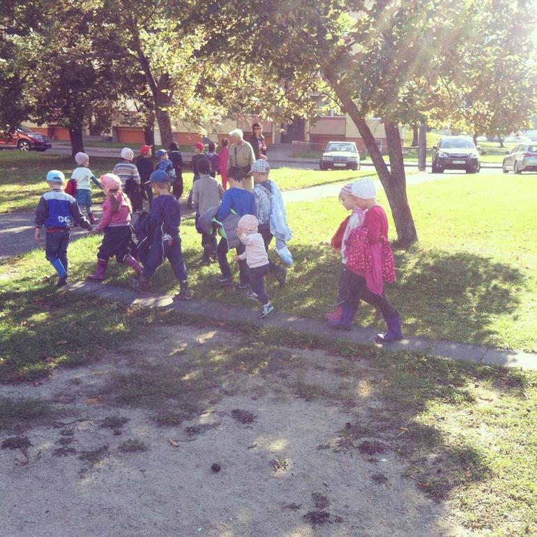 Пожаловала к нам сегодня на детскую площадку садиковая группа. Скажу честно, я сначала напряглась конкретно, но они довольно быстро ушли. Как обычно построились, пересчитались и вперед. Алина увидела, встала к ним в колонну и пошла! Адьес, маманя! Я за ней, а ей пофиг))))) Воспитательница так умилилась, протянула руки и Алина не сомневаясь прыгнула ей на руки :)))) А я думала, что в 1,5 года ребенок еще не готов к саду - враки!