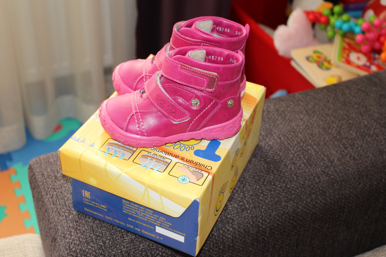 мы весной покупали 22 размер, там стелька 14,5см была, когда ножка у нас около 13 см была. Нас в магазине заверили, что хватит еще на осень (эти Тотто были первыми и единственными, которые мы брали в Таллинне). Но сейчас у нас ножка 14,5 и те ботинки нам малы. Так, что не надо было брать с таким большим запасом и в этот раз решила не брать, а то и так Алина спотыкается много.
