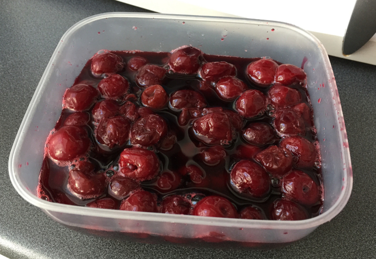 Вишню без косточек за 2 дня до приготовления залить коньяком, перемешать с 0,5 стакана сахара, закрыть крышкой.