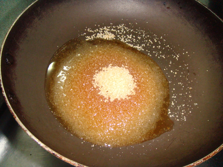 Сделать жженку из 1 ст.л. воды и 3 ст.л. коричневого сахара: