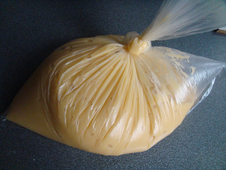 Поставить в холодильник (я на ночь). Затем разрезать: