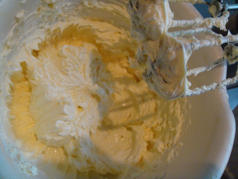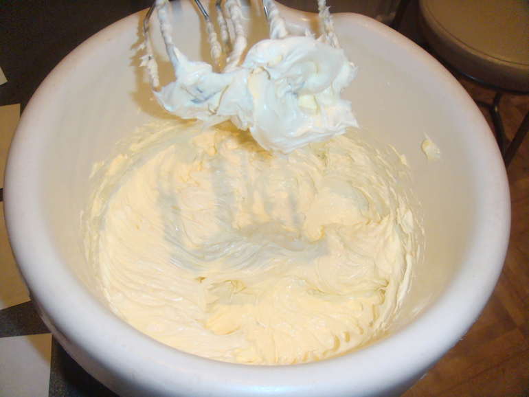 Для крема 300 г сливочного масла взбить с каплей ромового ароматизатора (а можно и ванилин использовать):