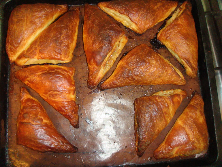 Слоеное бездрожжевое тесто покупаю готовое. Его отлично делают (раньше у меня уходило по пол дня на его изготовление). Тесто просто разморозить.
