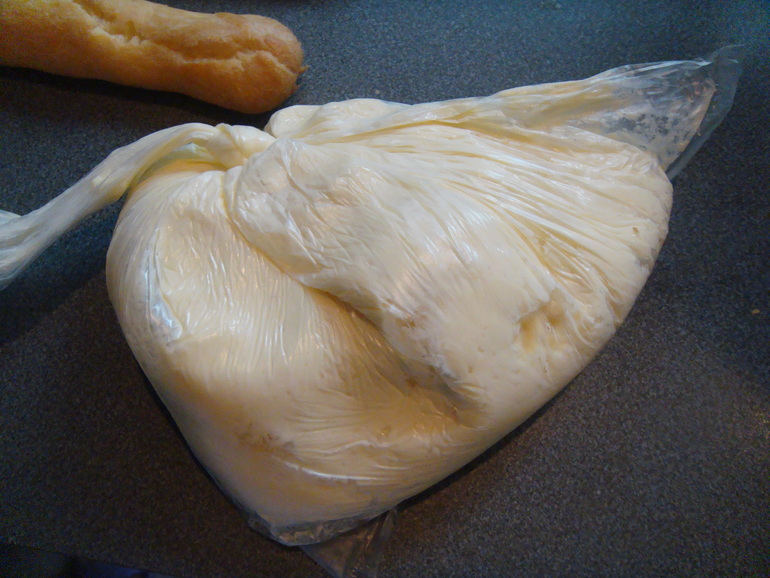 Получившееся гладкое тесто переложить в кондитерский мешок (а у меня обычный):