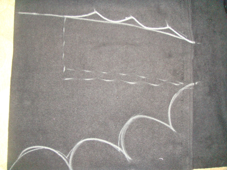Но я решила усложнить костюм и сделала сверху тоже волны (ткань сложена по спинке):