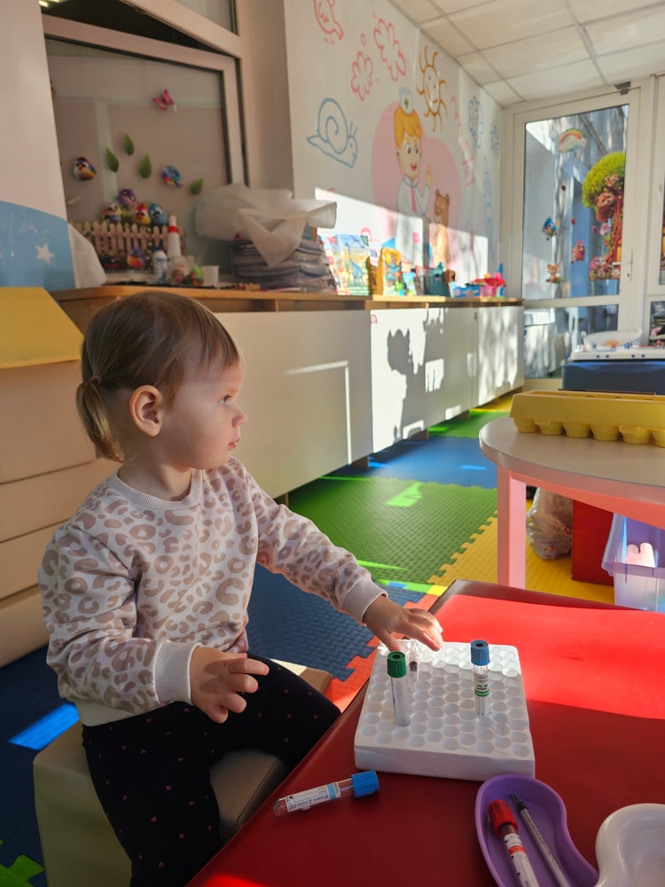 С утра ещё сходили сдали анализы в платный центр, я удивилась,что в нем есть детская комната. За ней закреплён сотрудник (женщина,бывший воспитатель,на пенсии), который присмотрит за ребёнком,пока мама посещает врача (часто бывает,если не с кем оставить ребенка). Ане эта комната понравилась,еще и подарок потом подарили😁даже не вспоминала,что у нее из пальчика кровь брали, и не плакала.
