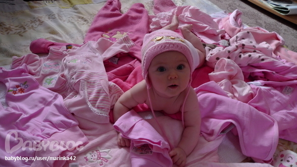 Я на самом деле розовый не люблю, да и не очень он идет Алиске, как мне кажется. Сама почти ничего розового не покупала, но надарили вот эту кучу..