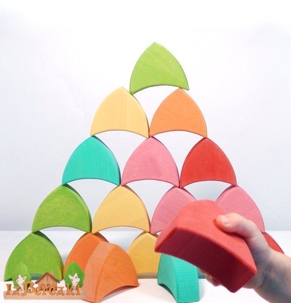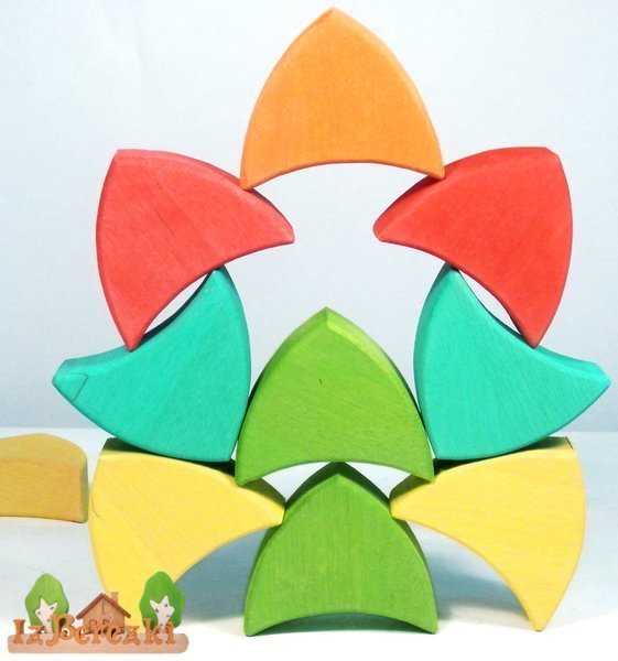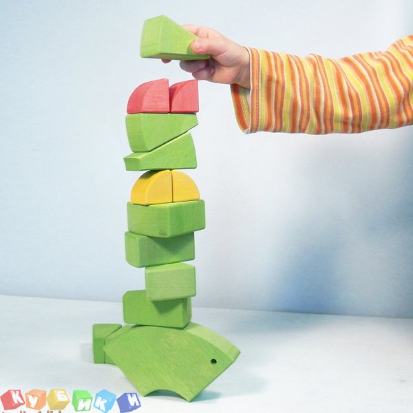 А ещё на деталях можно изучать законы механики. Средние фигурки, если их поставить на рёбрышко очень интересно переворачиваются. Попробуйте объяснить ребёнку причину этого переворота.